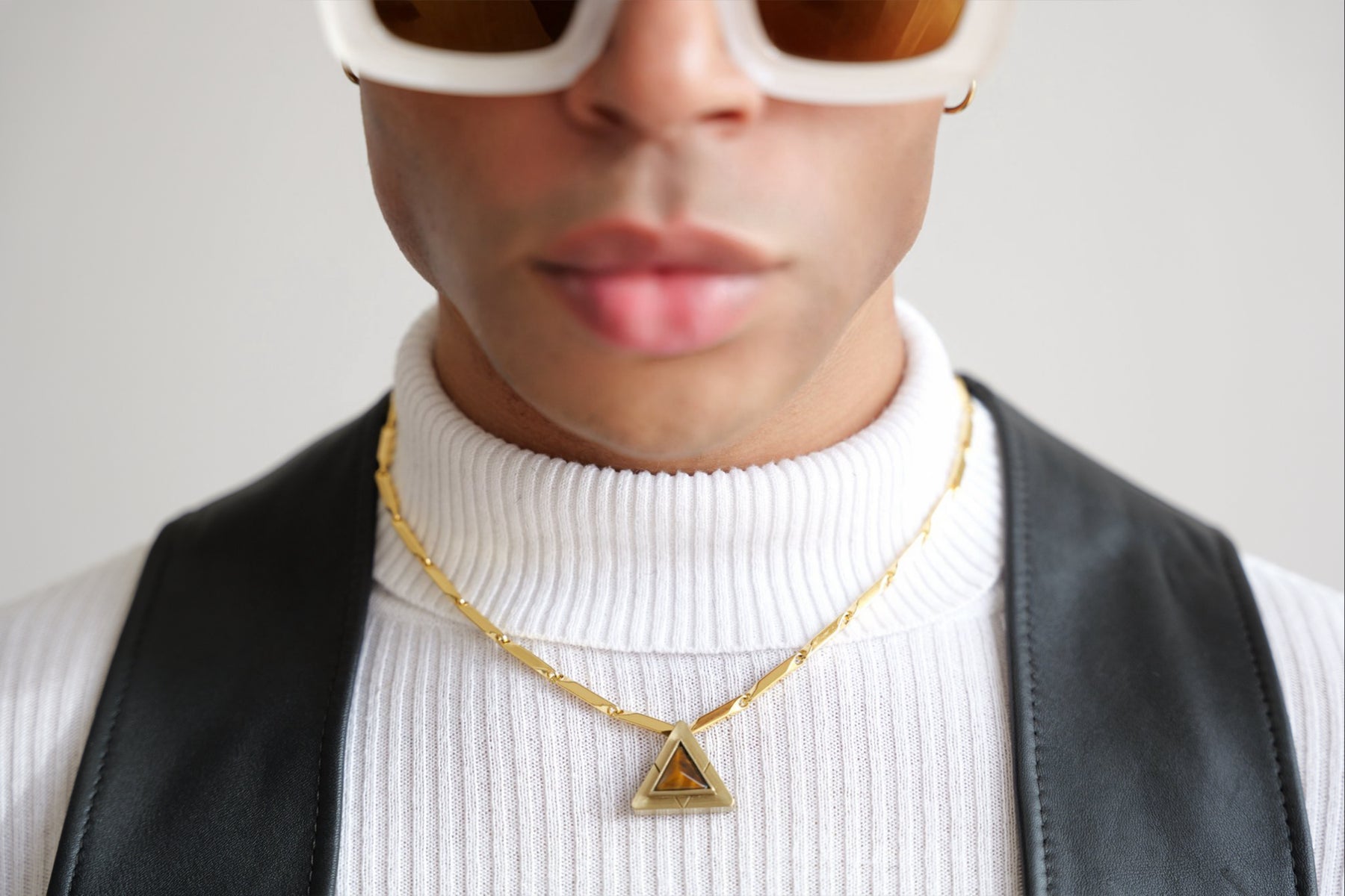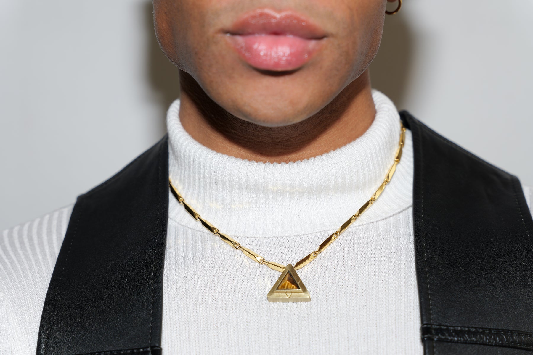 Flirt with the edge of the universe when flaunting the DIPHDA Prism Necklace. Modern, clean, unique, and bold, effortlessly stand out in The Prism.